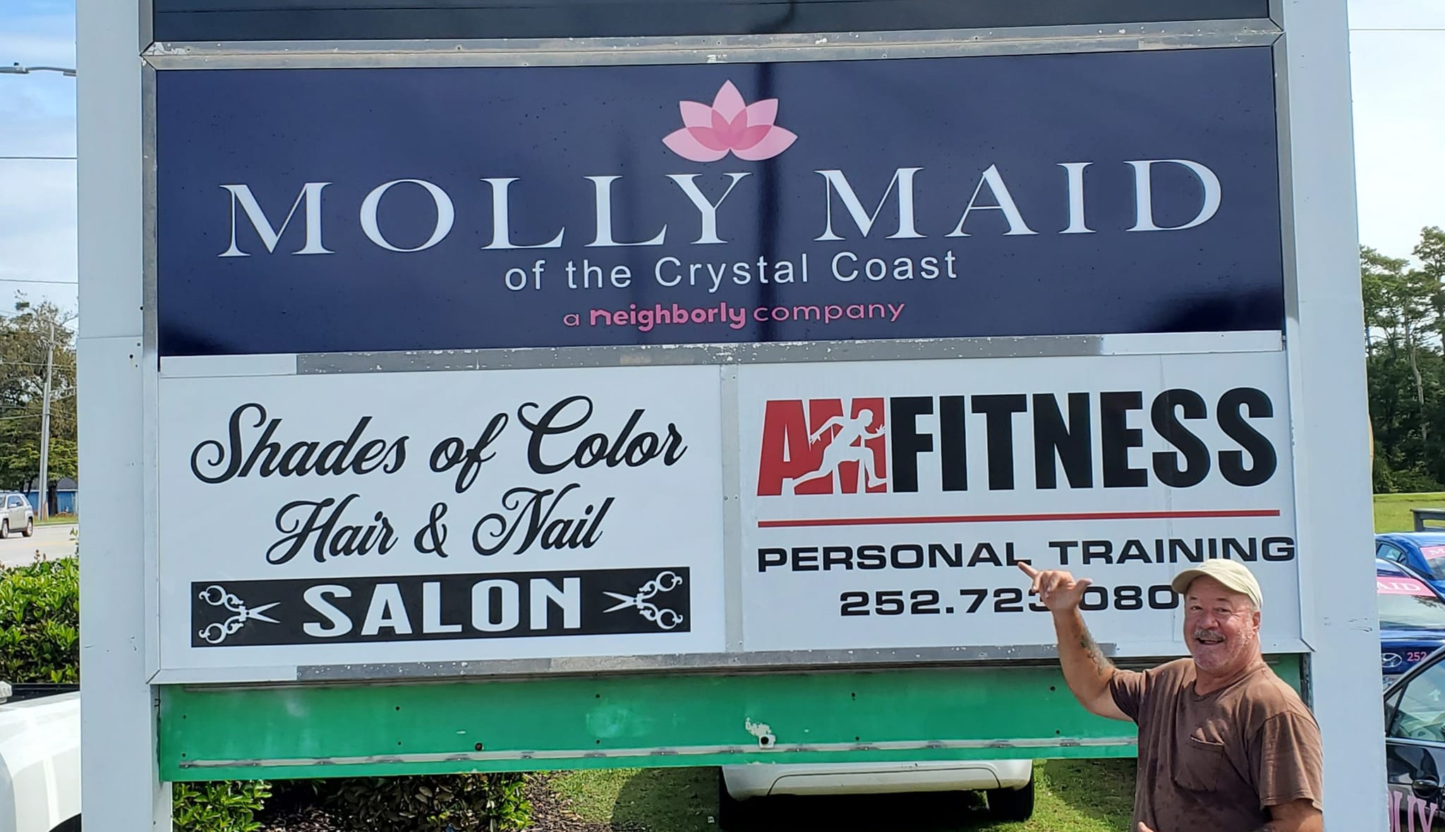 Above the signs we made and installed for Shades of Color Nail and Hair Salon was the Molly Maid of the Crystal Coast sign. They opted for printed vinyl over acrylic for their backlit sign- and update to logo and color. We were happy to oblige, and appreciate their...